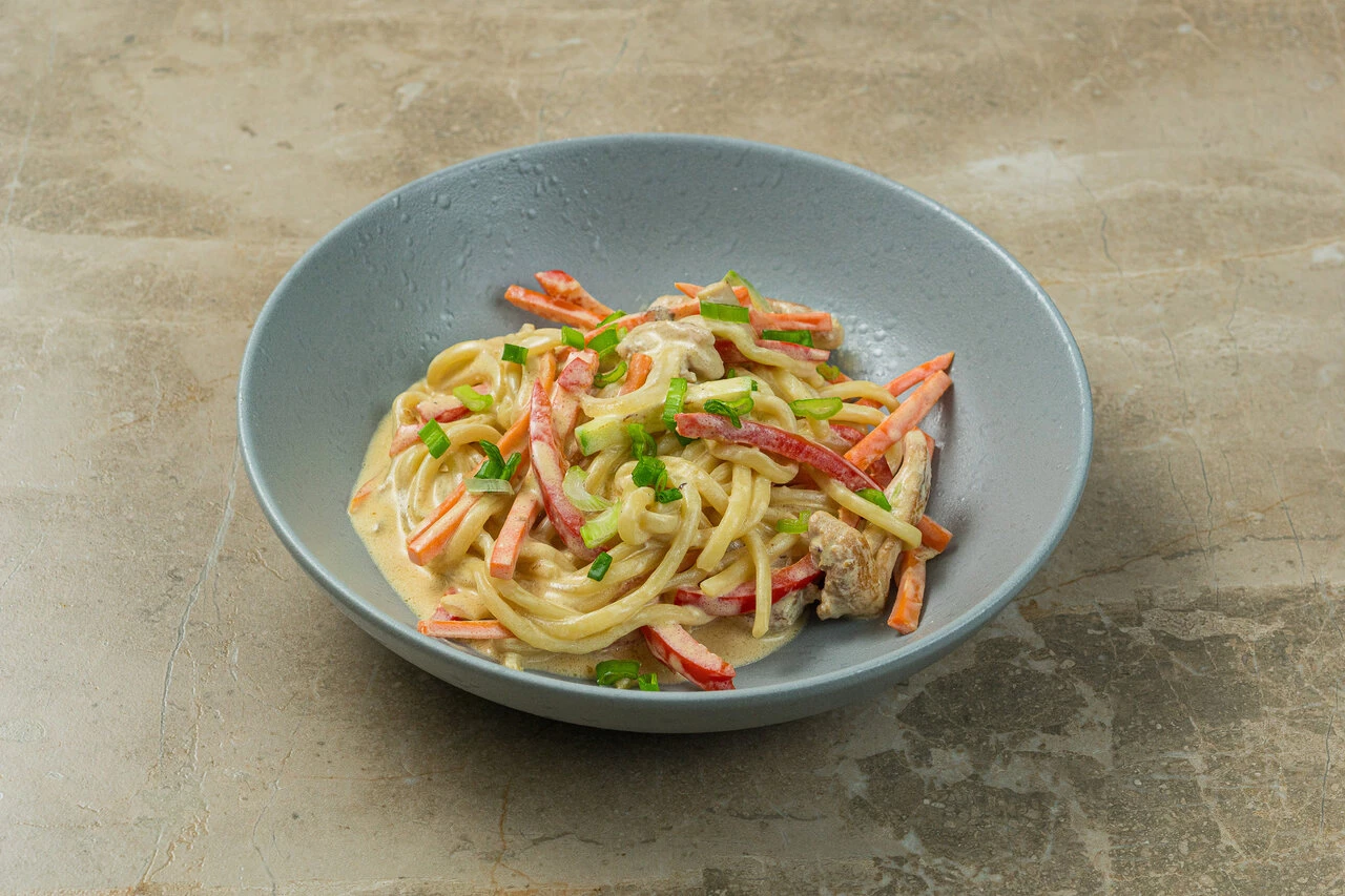 Здравствуйте! В заказе был суп, курица имела ужасный запах, естественно есть его даже не стали. Карбонара вкусная, но не понравилась картонная коробка, которая тоже дает свой запах